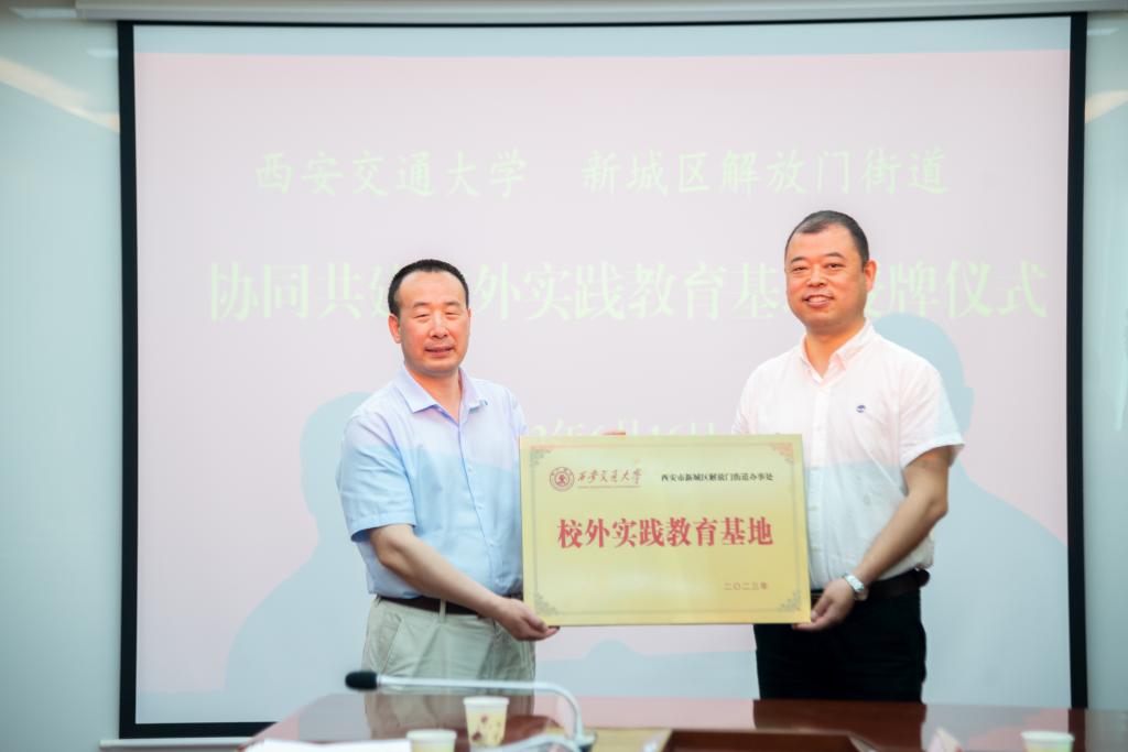 副院长陈建兵、新城区解放门街道党工委书记郭珮琦出席授牌仪式,解放门街道党工委副书记韩靖主持活动。马克思主义原理研究所所长李永胜,马原所联合党支部书记樊晓燕等师生10余人、解放门街道办工作人员及下属七个社区负责人参加活动。