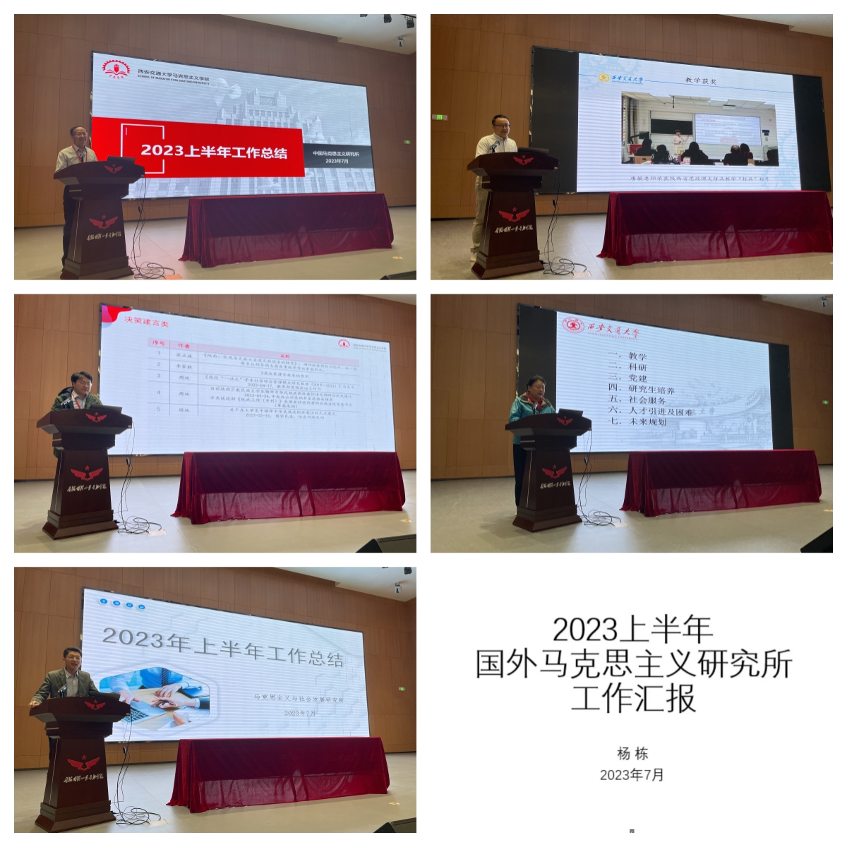 田建军、吴鹏、朱旭、马金玲、刘占虎、杨栋分别代表中国马克思主义研究所、马克思主义原理研究所、思想政治教育研究所、近现代历史研究所、马克思主义与社会发展研究所、国外马克思主义研究所等6个系所汇报了半年以来的系所在教学科研、队伍建设、人才培养等方面所开展的工作和取得的成绩。