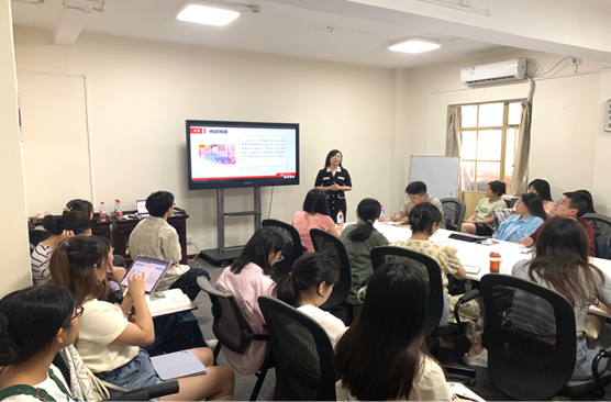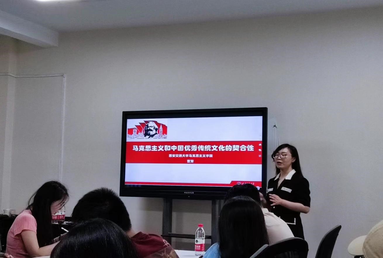 紧接着,曹芳副教授从“唯物史观与中国传统历史观的融合”、“阶级斗争学说与中国传统革命思想的融通”、“科学社会主义愿景与中国大同社会理想的融合”、“科学理想精神与‘中庸之道’‘实践理性’的会同”四个方面为与会师生详尽解读了马克思主义基本原理同中华优秀传统文化在内容上的诸多契合之处。随后曹芳副教授从五四时期尤其是新文化运动时期马克思主义在中国的传播及先进知识分子对马克思主义的坚定信仰中得出结论:任何外来学说想要在中国得到传播发展并真正为中国人民所接受,就必须与中国的文化传统相结合,否则就会成为无源之水,无本之木。