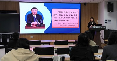 岳潇博士作题为“全人类共同价值与西方‘普世价值’的本质区别”的学术报告。她从价值主体、价值目标和价值实现三个角度分别阐述了全人类共同价值与西方“普世价值”的根本区别,从理论与实践层面分析了全人类共同价值的真实性和西方普世价值的虚伪性。岳潇老师指出,同学们一定要坚定弘扬全人类共同价值,坚定地站在历史正确的一边。