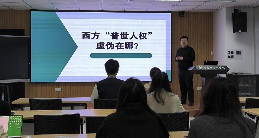 高飞副教授作题为“西方普世人权价值观的批判”的学术报告。他从理论、实践和利益三个维度揭示了西方普世人权的虚伪性,并强调要认清西方普世人权标准的双重性,坚定不移走中国特色人权发展道路。