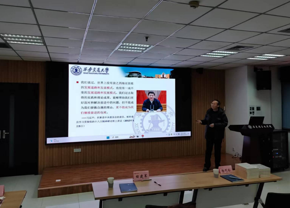 中国马克思主义研究所副所长田建军副教授作题为“变局与坚守——读《中国模式:经验与挑战》”的学术报告。田建军副教授从世界百年未有之大变局这一问题出发展现了“西方之乱”与“中国之治”的对比并引出主题,探讨中国的成功之谜。田建军副教授先是介绍了郑永年的生平与《中国模式:经验与挑战》的写作背景,他指出“中国崩溃论”甚嚣尘上、“华盛顿共识”引发的灾难、中国科学应对危机赢得赞誉等原因都促成了该书的完成。田建军副教授主要探讨了全球化促进中国转型、支撑中国模式的三个主体性结构、强政府与强社会等主题。本场讲座视野宏阔,立意高远,不仅丰富了师生们对中国模式的认识,同时也坚定了与会师生对中国特色社会主义道路自信。
