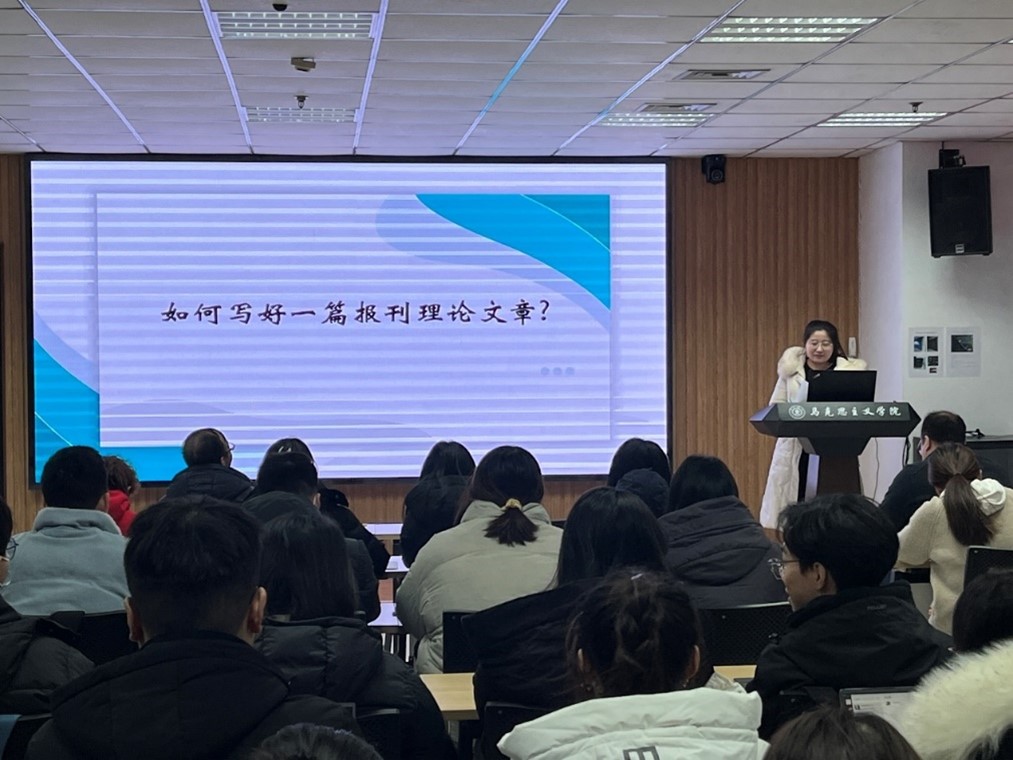 杨巧玲应邀作题为“如何写好一篇报刊理论文章”的主题讲座。杨巧玲从政治上、主题上、结构上、表达上、比例上分析了报刊理论文章的基本特点,指出报刊理论文章大致可分为阐释型、研究型、总结型、印证型、体会型五类。针对报刊理论文章地写作方法,杨巧玲对文章各部分地典型示例进行分析,从选题、逻辑结构、语言表达等方面进行了生动地讲解。通过采用“规范讲解+案例分析”的形式,本场讲座让同学们进一步认识到报刊理论文章写作要从观点正确、论据充分、语言规范准确、引用核实四个方面着手,使同学们明确报刊理论文章选题的基本方法和写作的基本规范,引发同学们对文章写作的思考。