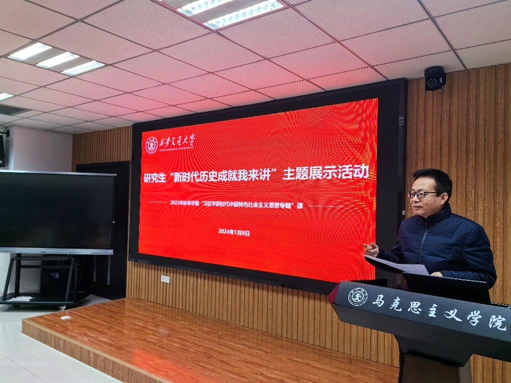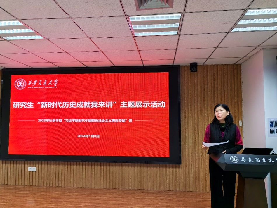 梁军对此项教学活动进行了总结。他指出,本学期研究生思政课“新时代历史成就我来讲”主题教学活动,是学院不断推动思政课改革创新的重要举措。同学们结合自己成长的故事、研究的领域、关注的话题等,对新时代中国在理论创新、改革开放、乡村振兴、绿色发展、共同富裕、大国外交等方面成就进行深入的学习,在生动的讲述中展现了新时代交大学子的青春风采、家国情怀和国际视野。他希望同学们继续加强学习,深刻认知历史方向和发展大势,对标祖国与时代需求发愤图强、增长才干,努力成长为有理想、有本领、有担当的创新型人才。