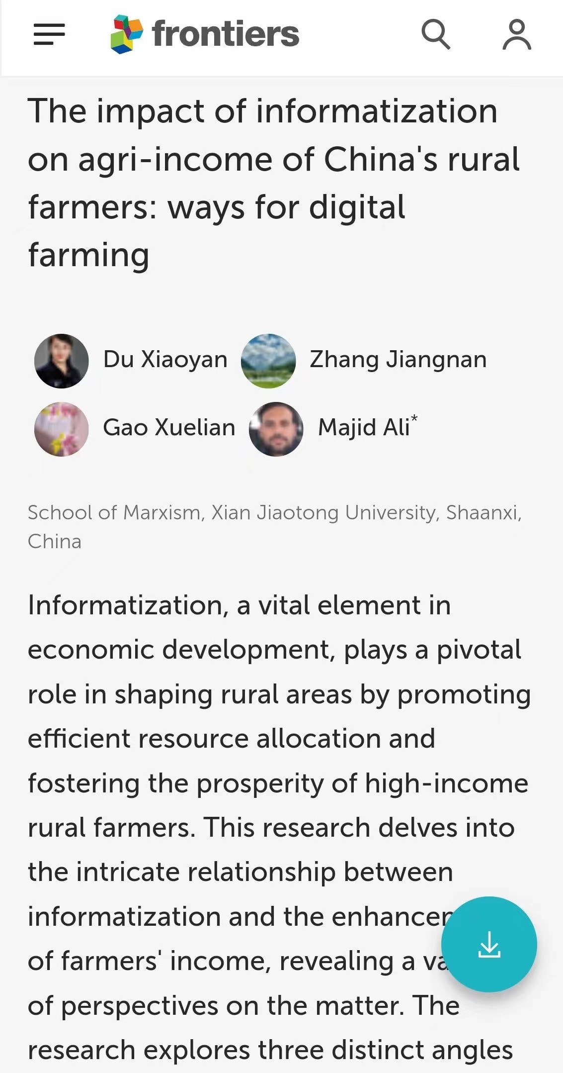 杜晓燕教授带领的团队在国际知名期刊《Frontiers in Sustainable Food Systems》(《可持续粮食系统前沿》)上发表论文《The impact of informatization on agri-income of China's rural farmers: ways for digital farming》(《农村信息化水平对农民收入的影响:基于数字农业视角》)。
