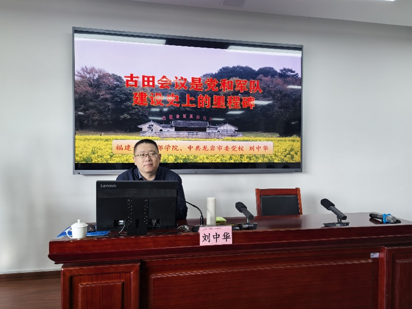 理论教学环节,福建古田干部学院、龙岩市委党校刘中华教授以“古田会议是党和军队建设史上的里程碑”为题,从闽西苏区革命斗争史出发,围绕古田会议召开的历史背景,古田会议召开的基本情况和主要内容,古田会议的“思想建党、政治建军”的精神内核等重点内容,结合鲜活的革命故事,联系当代实际,阐释了古田会议精神对我党我军重大而深远的历史和现实意义。