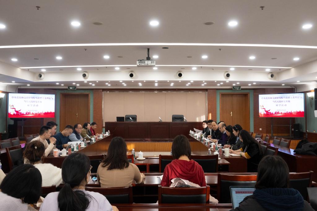16日上午,师生代表前往中央党史和文献研究院进行座谈交流,会议由中央党史和文献研究院第四研究部副主任胡长栓教授主持。会上,胡长栓首先对基地师生来访表示热烈欢迎,并简要介绍了出席座谈会的主要人员、研究院的基本情况和第四研究部的主要工作职责。邱辰简要汇报了学校、学院基本概况和基地建设情况,并向中央党史和文献研究院长期以来的关心支持表示诚挚感谢。中央党史和文献研究院第六研究部副主任刘亮从历史沿革、新时代新成就、未来愿景三个方面详细介绍了中央文献对外翻译工作的进展,第五研究部综合处处长付哲分享了马恩列著作编译情况,第四研究部马克思主义基本理论研究处副处长李百玲、国外马克思主义研究处副处长范为,第四研究部综合处三级调研员刘思妗分别介绍了第四研究部有关马克思主义基本理论、国外马克思主义研究和智库建设情况。在互动环节,同学们积极提问,围绕马恩经典著作阅读建议、前沿问题追踪渠道、原文引用方法、学术交叉研究等内容与研究院各位专家进行了深入交流,让同学们深受启迪,收获颇丰。