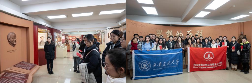 师生还参观了马克思主义传播史展览馆。该展览馆始建于2011年,是我国首个马克思主义传播史展览馆,包括主展厅、《共产党宣言》主要版本陈列厅、中央党史和文献研究院主要成果展示厅和珍贵藏品展示厅四个展厅。在讲解员的生动讲解下,同学们仿佛回到了百年之前,通过图片、报刊、档案与雕像等多种载体,依次走入“革命伟人、历史选择、星火燎原、艰难岁月、延河之光、理论宝库、时代强音和继往开来”八个展览单元的历史画卷之中,深刻体味马克思主义在饱经苦难的中国大地上生根发芽、开花结果的艰苦历程。基地师生表示,马克思主义经典著作在中国的编译、研究和传播过程,是一代代中国马克思主义翻译家与理论家不畏牺牲、皓首穷经、无私奉献等崇高精神的生动展现,通过参访研学,不仅对马克思主义在中国传播的历史脉络有了更加全面系统地了解,也进一步坚定了传承和发扬马克思主义的信念和决心,今后要把读马克思主义经典、悟马克思主义原理当作一种生活习惯、当作一种精神追求,努力做到真学、真懂、真信、真用。