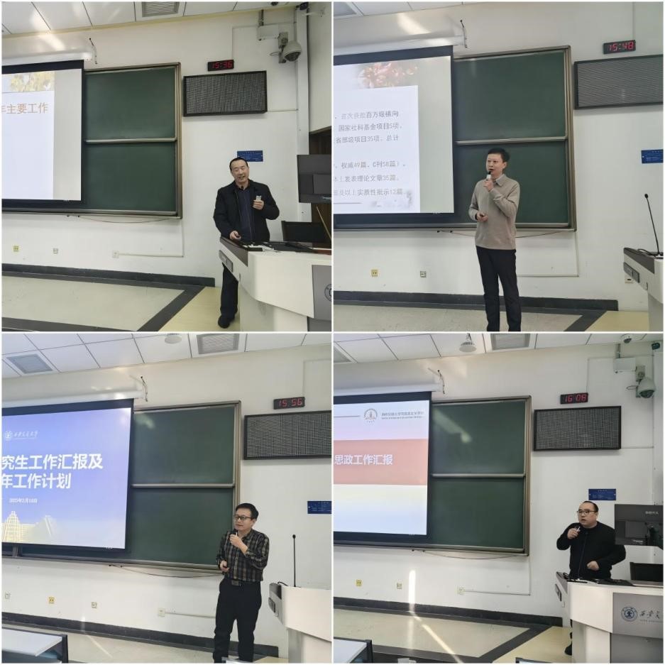 院长燕连福传达了学校2025年度重点工作会议精神,通报了2024年学院在队伍建设、思政课教学、人才培养、科研工作、学科建设、理论宣讲、国际化交流、平台建设、示范带动等重点工作上取得的成果,并明确了2025年学院的发展方向。他强调,2025年是学院发展的关键之年,全院教职工要切实把思想和行动统一到学校学院决策部署上来,瞄准学科评估的关键指标持续用力、更加给力,力争在教学改革、队伍发展、人才培养、学科建设、科研成果等方面取得更大进步。