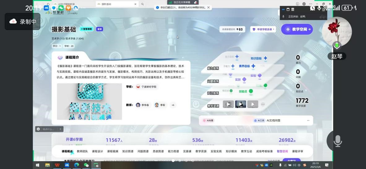 其次,智慧树张惠莉、赵琴老师详细介绍了AI辅助教学的七个步骤,包括能力目标、课程资源、知识库、知识点、教学空间、AI辅助与知识对话、AI工具等,讲述了课程建设的过程和设计。