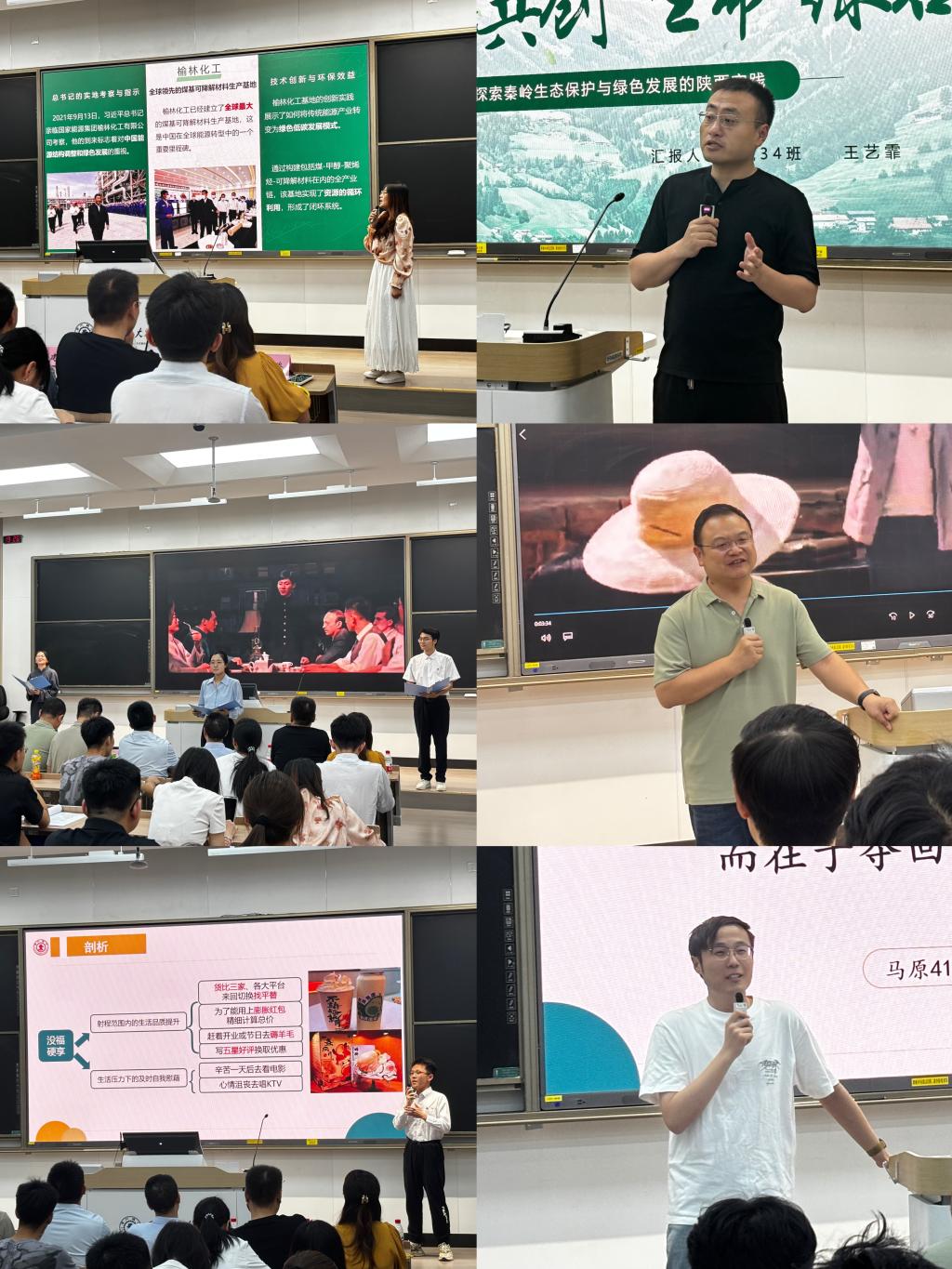 在优秀作品展示环节,获奖同学代表王艺霏、曹佳宝/李欣桐/潘冠伊、田烽廷分别带来了题为《生命绿谷——探索秦岭生态保护与绿色发展的陕西实践》《走进兴业路76号——解码中国共产党人的精神密码》《“没福硬享”是年轻人的堕落还是反抗?》的精彩展示。他们紧密结合自身所学所思所悟,生动阐述了他们如何“沿着总书记的足迹”观察新时代感悟新思想、如何从“中国革命故事”中汲取在新时代建功立业的力量,如何通过“读原著学原理”增强理论自觉与自信。同学们展示内容逻辑清晰,语言生动,充分展现了 色情影片