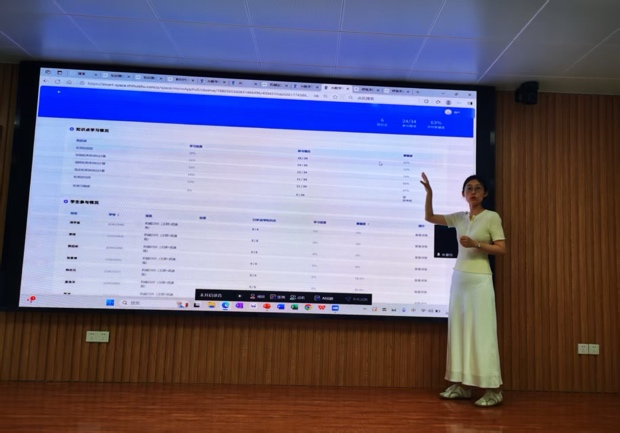 田建军老师首先介绍了新时代中国特色社会主义理论与实践AI课程建设的背景,并高度强调了AI赋能高校思政课建设的重大意义。随后,智慧树工程师张惠莉、张夏恺相继围绕新中特AI智慧课程建设的整体架构及目前进展情况进行了介绍,并重点讲解了课程知识图谱、能力图谱、问题图谱的建设思路及运用场景。中马所教师就AI课堂助手、AI智能问答等教学使用过程中的具体问题进行了提问交流。