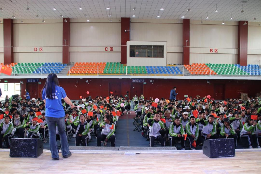 音乐跨越语言,旋律沟通心灵。在拉阿高中学生的热烈期待中,赴藏队队员在拉阿高中体育馆组织高二全体学生开展“同唱一首歌”活动。在合唱环节,当《红旗飘飘》旋律响起,全场学生挥舞红旗,汇成红色海洋,汉藏学子用歌声共庆西藏自治区成立60周年,齐声表达对祖国的深厚情感。