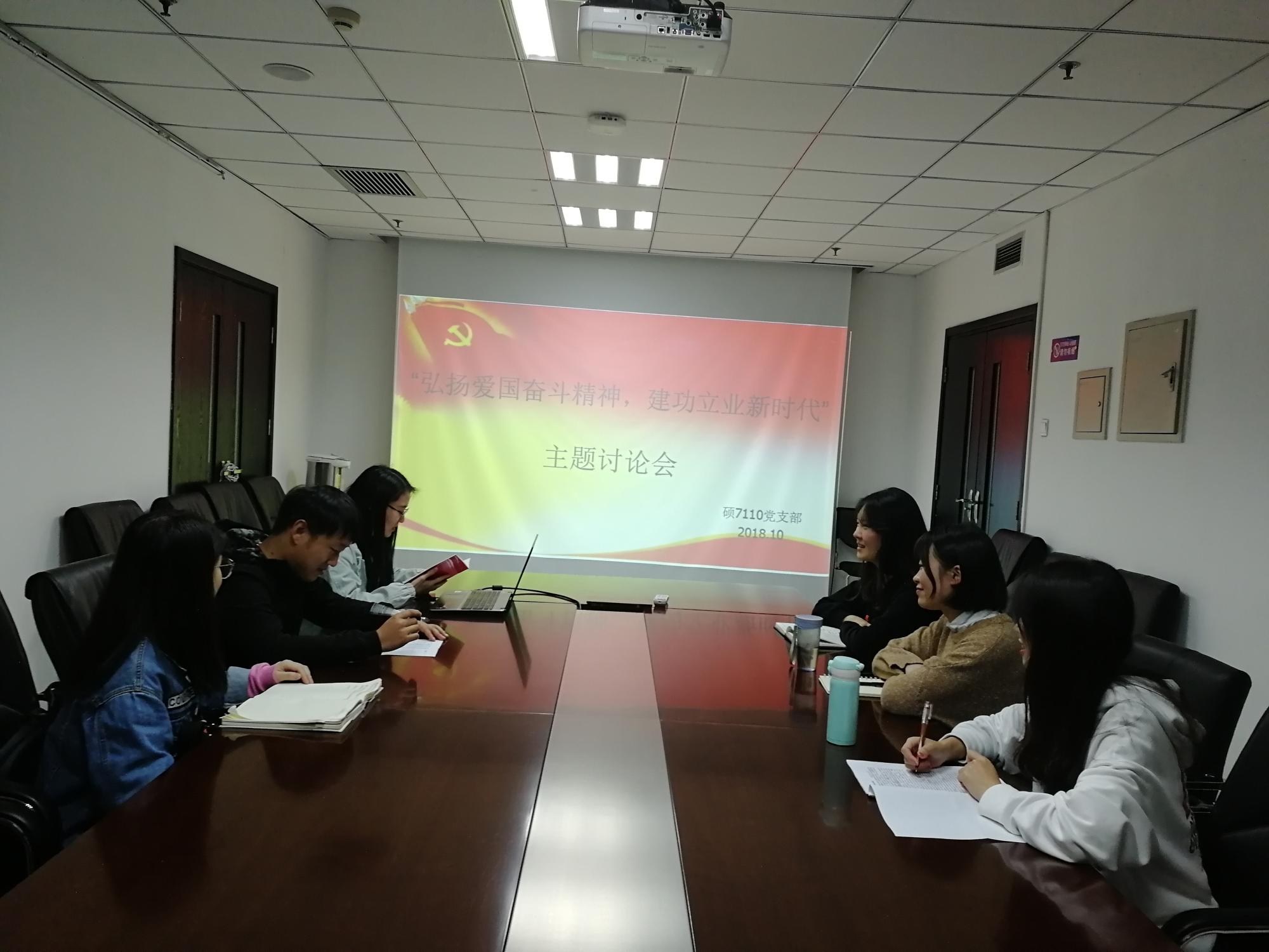硕7110党支部在主楼E506教室召开了“弘扬爱国奋斗精神,建功立业新时代”主题教育活动。会议由宣传委员谢淑敏主持,硕7710全体支部成员参会。会上,宣传委员谢淑敏带领大家从三个方面深入学习了爱国奋斗精神和“双一流”建设精神。