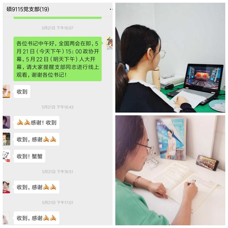 硕9115党支部及时组织支部所属党员通过网络、手机、电视等线上方式观看了“两会”开幕式和《政府工作报告》的全过程,并以组织生活会的线下形式进行了热烈讨论。