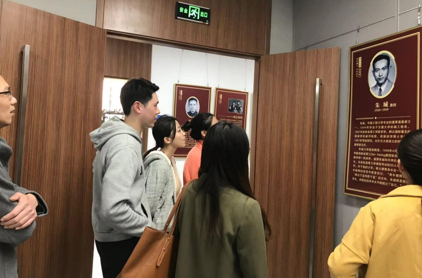 此次展览集中展示了交大能动、电气、机械等多个学院的已故西迁教授、副教授和部分为西迁创业作出重大贡献的党政干部等53人,按人物生平、西迁情结和创业奉献三个板块对人物进行详细介绍。有我们经常听闻的先辈楷模钟兆琳教授、陈大燮教授等地,亦有我们应该学习的榜样任梦林总务长等。参观期间,杨永浦为支部成员更为详细地介绍了部分先贤的感人事迹。例如中国工程力学专业的重要奠基者之一朱城教授。朱先生力学造诣精湛,MIT教授曾致函国民政府教育部,盛赞他在该校“高等力学”考试中的优秀表现。回国后,虽受到清华等国内知名高校力邀,他仍选择回母校交大任教。在迁校之初,朱先生尽管身体不太好,但仍废寝忘食地工作,编写教材,制定教学计划。1959年春,年仅38岁的朱先生便英年早逝,令人扼腕。西迁先贤们无不像朱先生一样,胸怀大局,无私奉献。