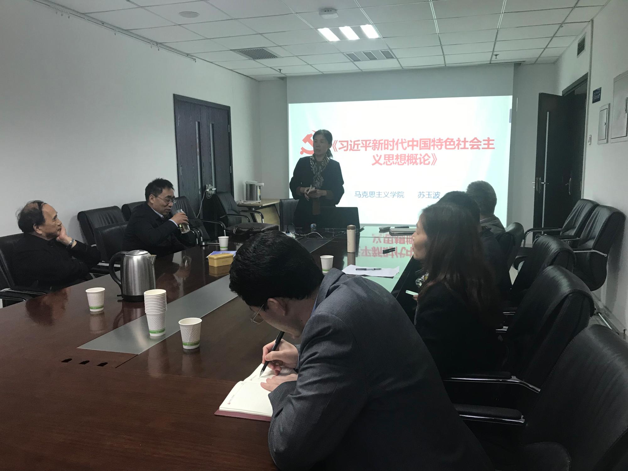 苏玉波书记主要阐释了党的十九大把习近平新时代中国特色社会主义思想确立为党必须长期坚持的指导思想的重大意义;苏书记从改革开放以来中国共产党历次全国代表大会的时代背景、会议主题、重大人事安排等方面梳理历史的脉络,提出党的全国代表大会有着定位、定标、定法的作用,在每一次重要的历史节点指明全党和全国人民前进的方向,体现了十九大报告中所说的“时代是思想之母、实践是理论之源”的深刻命题;苏书记特别指出,习近平新时代中国特色社会主义思想具有丰富的内涵,值得高校思政课教师党员反复学,学懂弄通,并用来自觉指导个人的工作和学习。