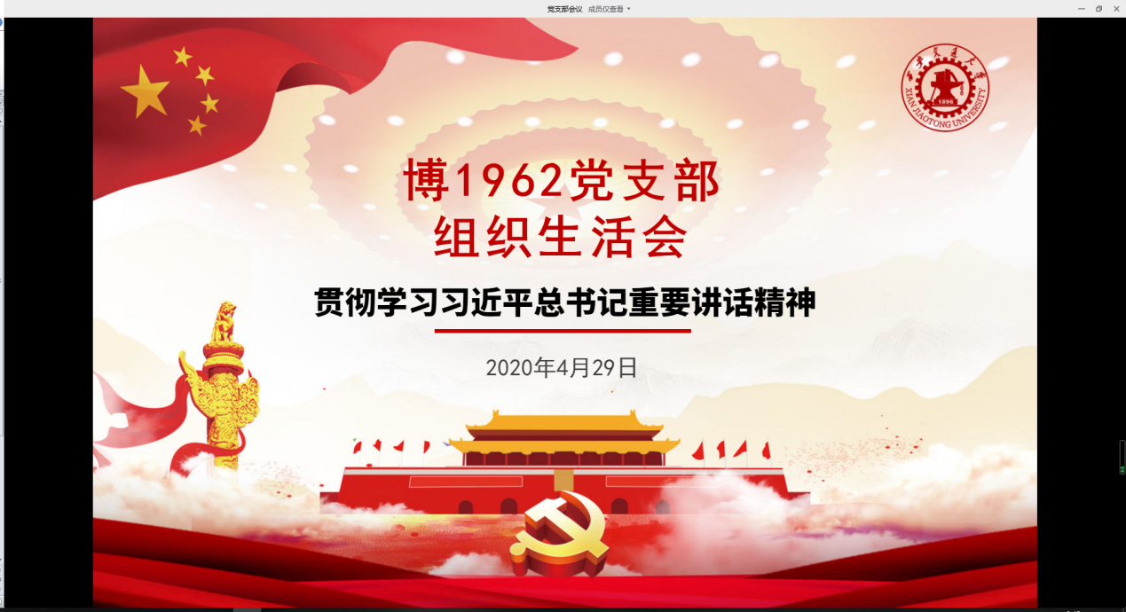 博1962党支部召开线上党组织生活会,专题学习习近平总书记重要讲话精神。会议邀请了学院党委书记苏玉波参加,由支部书记刘春霖主持。