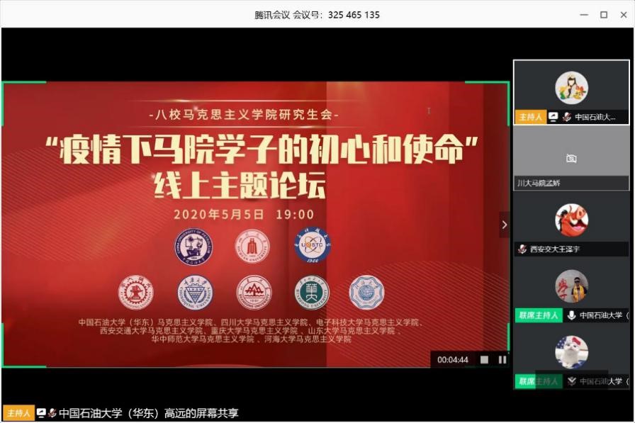 5月5日,八校马院“疫情下马院学子的初心和使命”线上主题论坛召开,200多名同学“战”在一起。