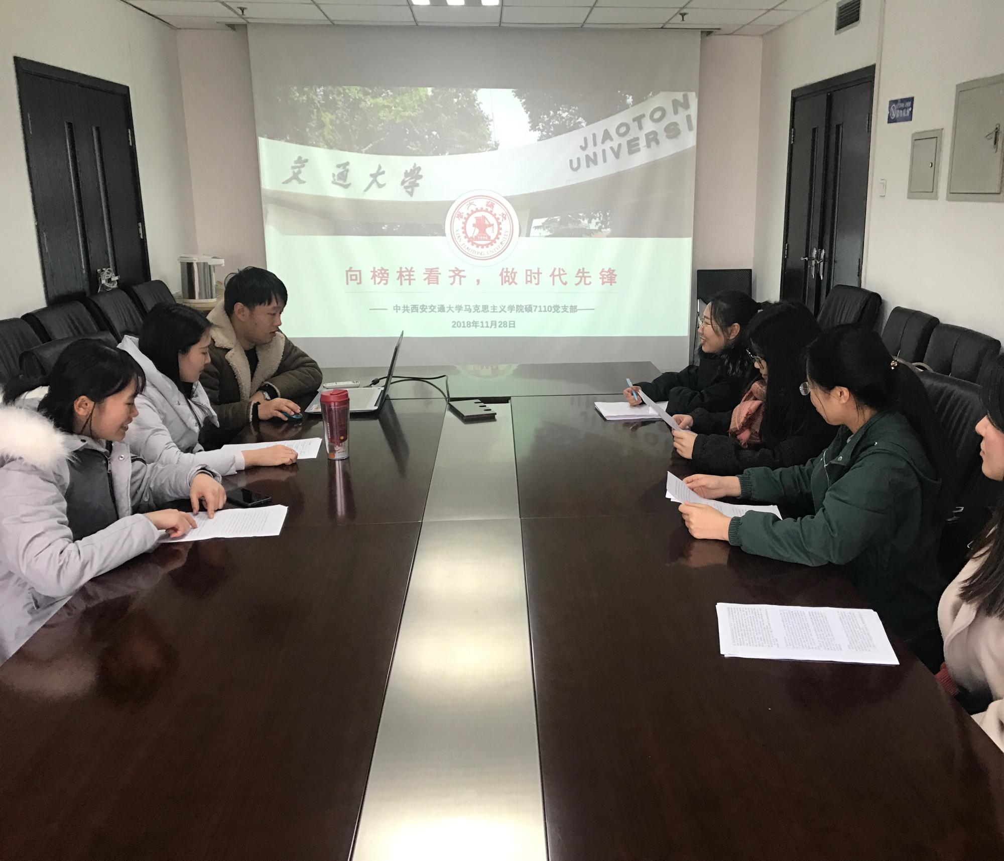 李根首先向支部成员详细介绍了孙泽海的科研和学术情况,他说到:“对孙泽海来讲,宣讲工作就是把所学的专业知识有温度地分享传递给其他人,就是从现实的人及人的现实活动中,以自己所学为其提供正能量。学习的成果不仅仅是要写在纸上,更应该通使所学到的马克思主义真理浸润更多人的心灵,在润物细无声的过程中影响更多人,感染更多人,改变更多的人。”其次介绍了关于李晓利的科研与学术情况,他说:“李晓利作为微宣讲团的团长,这一年来,她随筑梦社微宣讲团奔赴天水、新疆等地进行宣讲,这些经历带给她收获,也让她迅速成长,成为筑梦社的骨干力量。”最后他号召党支部成员要积极向他们看齐学习。