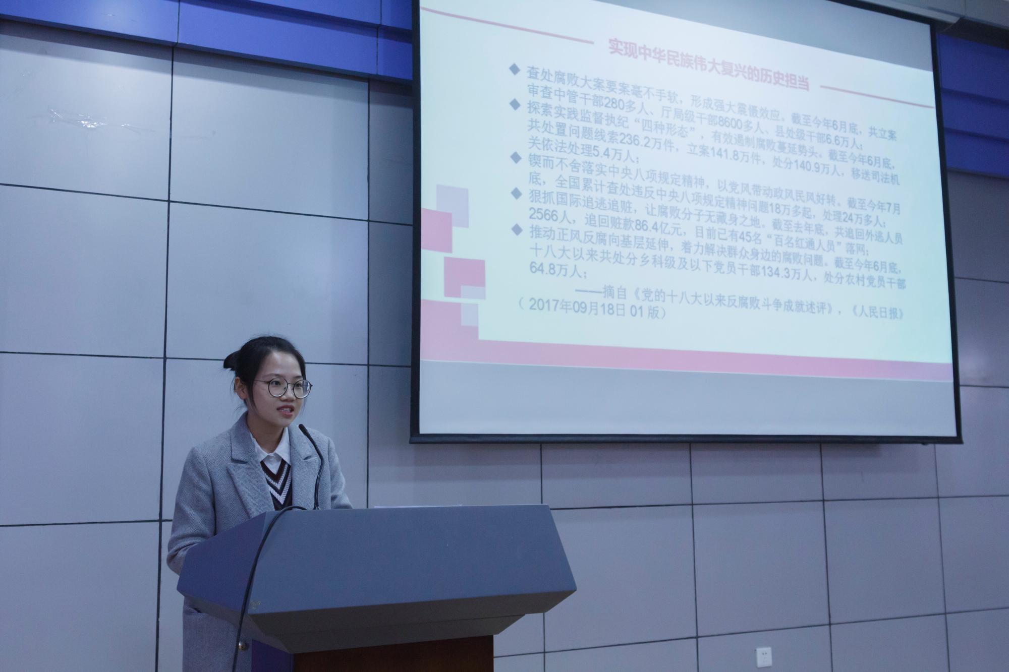 自2017年10月作为第一批宣讲人加入“学生微宣讲”团以来,作为唯一一位博士生迅速成为宣讲骨干,坚持将宣讲党的创新理论作为自己的初心和使命。曾先后奔赴延安、苏州、上海、嘉兴、马兰、广州、香港、照金等地,宣讲30余场,累计受众超过五千人次。借助网络平台进行直播宣讲,线上累计点击超过100万人次。在中央政治局委员、中宣部部长黄坤明来校调研时走进宣讲现场,作为主讲人进行汇报得到勉励和肯定。同时参与宣讲培训工作,指导培训20余场,审稿4万余字。新华社、光明日报、中国教育报、陕西日报等报道十余次。