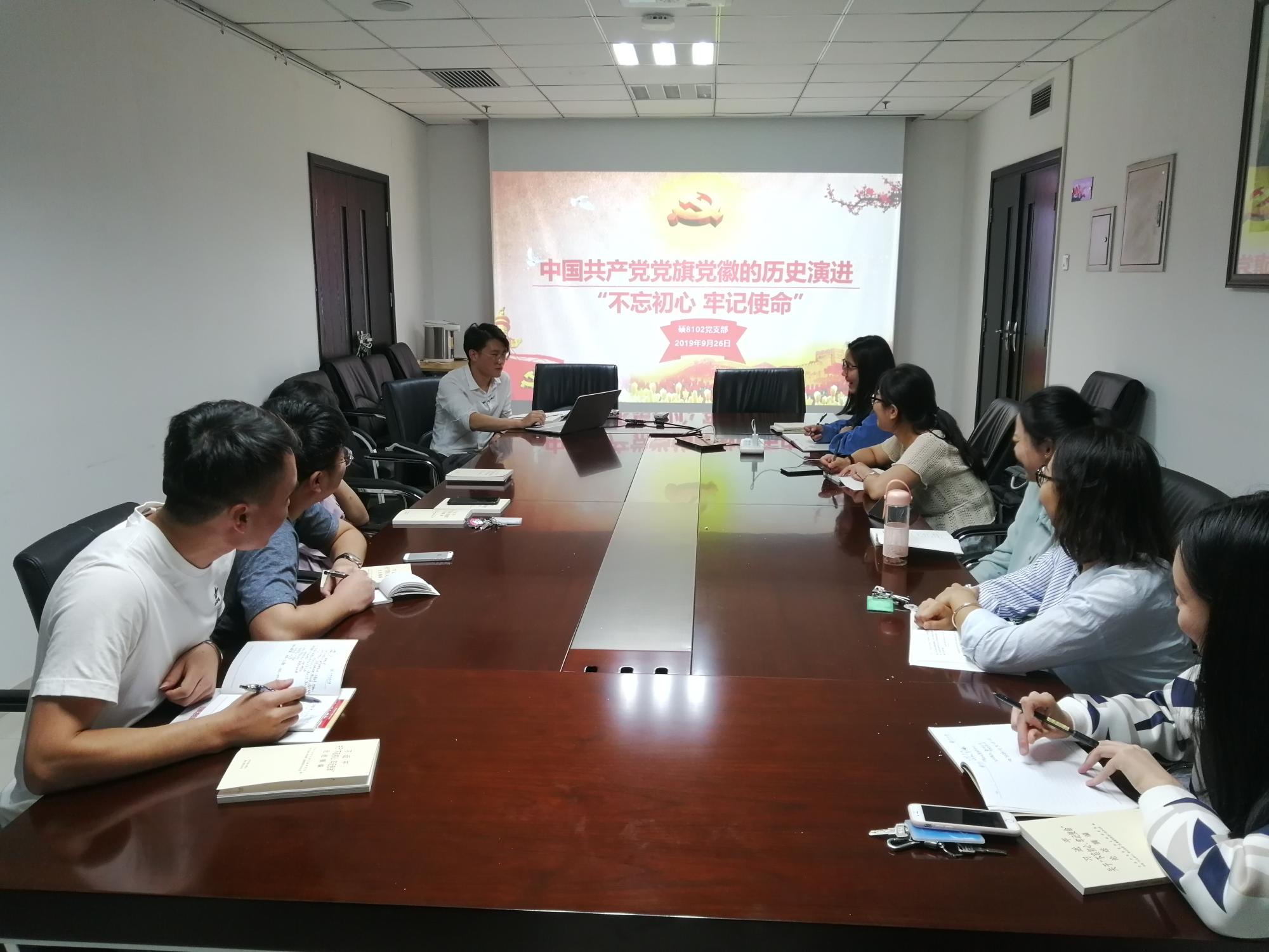 随后,会议进行第二项内容,支部书记刘阳科带领支部成员从党旗党徽的历史演进中,深刻把握“不忘初心、牢记使命”的重大意义。中国共产党的党徽党旗,是中国共产党的象征和标志。中国共产党的党旗党徽制度,是党的制度建设的重要组成部分,每个共产党员都应该郑重对待,能够准确理解、解说党旗党徽的图案和含义。毛泽东有句名言:“世界上怕就怕‘认真’二字,共产党就最讲‘认真’。”在建党即将百年之际,用心认真仰望党旗党徽,真正地牢记曾经面对党旗党徽宣誓时的誓言,具有特别重要的历史意义和现实意义。支部成员在学习尾声,纷纷表示此次学有所获,今后将会以更加严肃认真的态度对待党旗党徽,对待支部活动,对待学习生活中的每一件事。