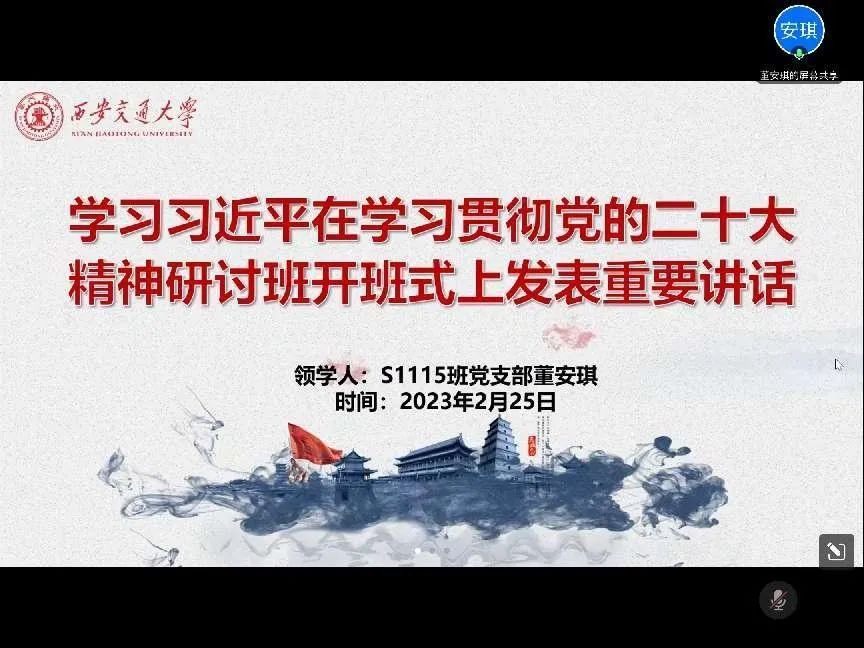 2月7日,新进中央委员会的委员、候补委员和省部级主要领导干部学习贯彻习近平新时代中国特色社会主义思想和党的二十大精神研讨班在中央党校(国家行政学院)开班,董安琪带领支部成员从“中国式现代化是什么样的现代化”“探索中国现代化道路的重任,历史地落在了中国共产党身上”“推进中国式现代化是一个系统工程”等方面系统学习了习近平总书记在学习贯彻党的二十大精神研讨班开班式上的重要讲话。