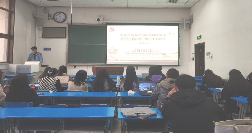 支部通过个人自学、研讨交流、党课辅导等方式推动支部成员原原本本、逐字逐句学习党的二十大报告和党章,学习习近平总书记在党的二十届一中全会上的重要讲话精神,全面准确领会党的二十大精神。在日常学习基础上,党团小组代表朱锞锞和王家瑞带领全体成员共同学习了二十届二中全会公报、习近平总书记在中央党校建校90周年庆祝大会暨2023年春季学期开学典礼上的重要讲话(以下简称为重要讲话)。