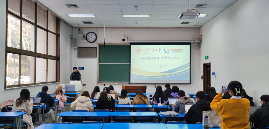 为深入学习传承雷锋精神,展现青年时代担当,支部邀请“微光”公益支教活动负责人郭沛豪做“传承雷锋精神,点燃希望之光”主题宣讲。郭沛豪从“初心”“使命”“奉献”“传承”四个维度详细介绍了“微光”公益支教活动的基本情况,同时深入介绍了“微光”公益支教活动背后的使命、责任与担当,号召青年学生从细微做起,争做雷锋精神的传承者、践行者和倡导者,共同汇聚向上向善的强大精神力量,进一步弘扬新时代雷锋精神,让雷锋精神在我们身边聚沙成塔,绽放新的时代光芒。