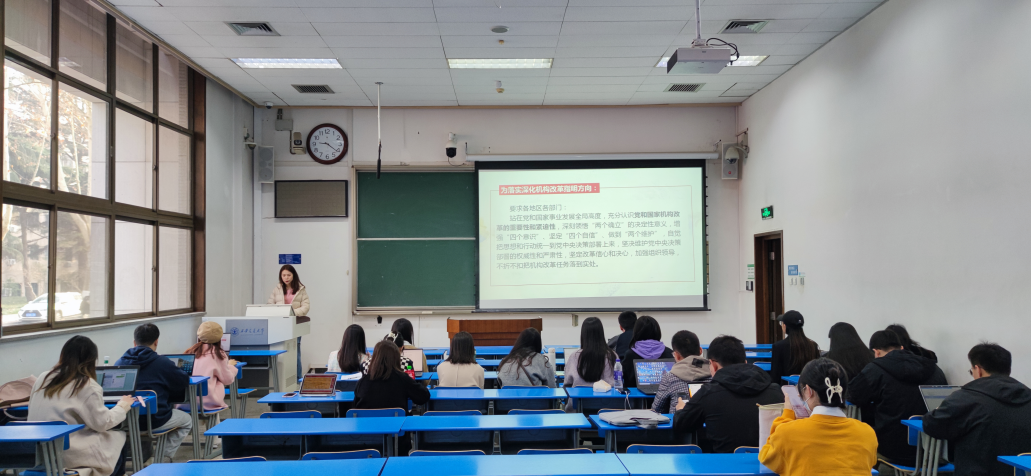 朱锞锞对公报内容进行了简要梳理,重点从“明方向”“强思想”“干事实”三方面展开,就深化机构改革、学习宣传贯彻党的二十大精神以及今年的目标任务做了详细领学。