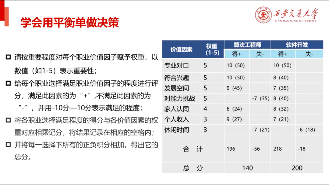 在决策环节中,南亚娟为同学们讲解了如何利用“平衡单”做决策,引导同学们思考如何更加科学地确定职业目标和规划职业生涯。她鼓励同学们积极思考、勇于选择、乐于实践,在实践中认识自我、提升自我。