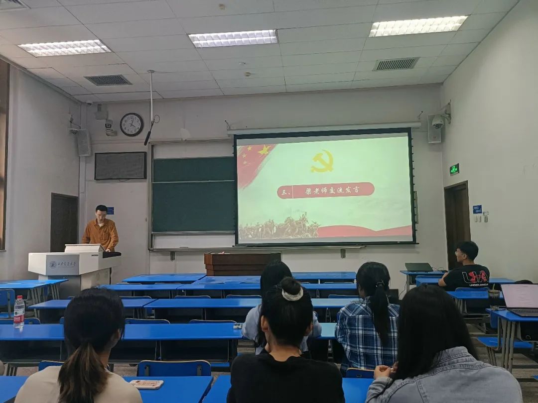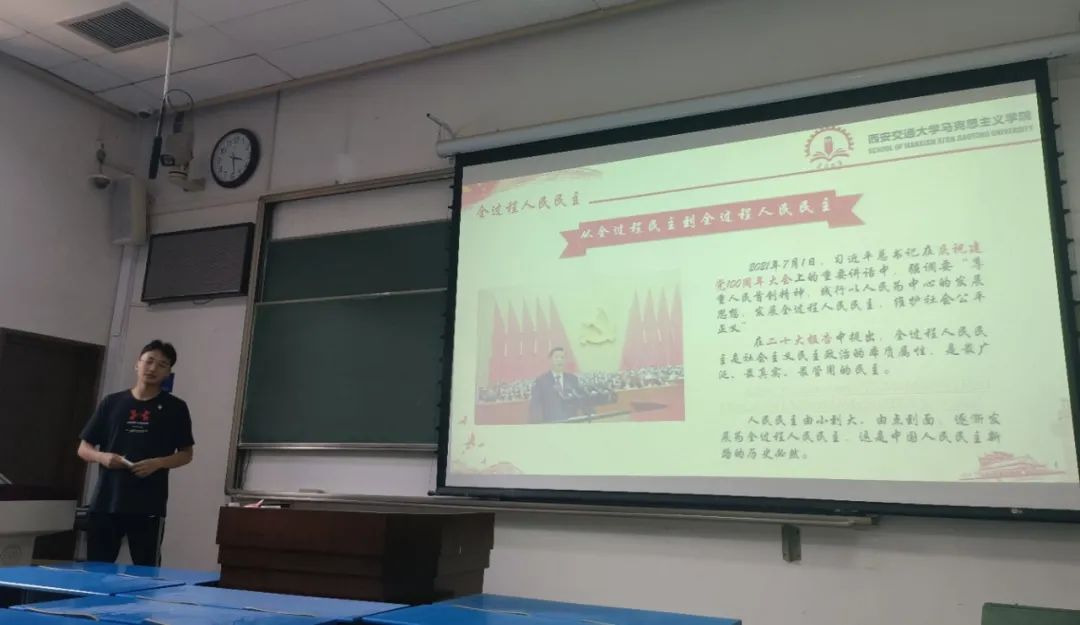 为切实加强党员队伍的思想建设,深入开展学习贯彻习近平新时代中国特色社会主义思想主题教育,支部与马列读书社共同开展“青马学悟”领学分享,由石津源作题为“全过程人民民主何以实现对西方民主的超越”的主题党课,他围绕全过程人民民主的由来、西方民主霸权的窘境和在对比中实现超越三个板块进行了分享,强调全过程人民民主以真实的人民“在场”超越西方民主的人民“虚化”。在交流互动环节,王丹丹、王博同志分别从全过程人民民主的理论与实践两个维度分享自身的学习经验。