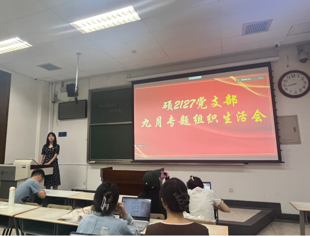为深入学习习近平新时代中国特色社会主义思想,9月12日,硕2127党支部在主B205召开新学期第一次组织生活会,会议由党支部书记范思怡主持,硕2127党支部全体党员参会。