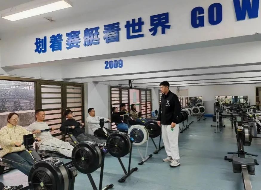 最后,支部成员共同参观了交大赛艇俱乐部。信息与通信工程学院硕3236团支部书记史晋明与核工程A2102班王政翰向支部成员详细介绍了测功仪的使用方法,并组织大家体验了250m测功仪测试。测功仪拉响声落下,同学们仿佛划着赛艇在灞河上沐风而行,踏浪而歌。