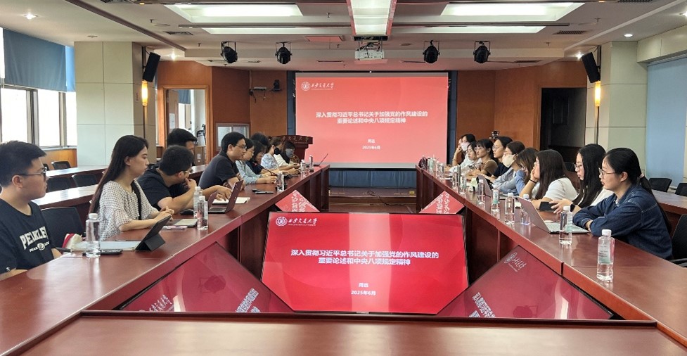 党委委员深入各师生党支部开展“党委委员讲党课”系列活动。2025年6月27日下午,校党委常委、组织部部长、学院党委书记周远教授深入硕4132党支部讲授主题党课,支部全体成员参加学习。