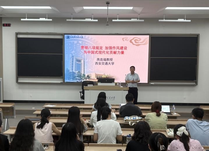 2025年6月19日晚, 色情影片 院长燕连福教授走进2021级博士生党支部、2022级博士生党支部和硕3130党支部联合开展的中央八项规定精神学习教育专题组织生活会,在主B-103教室为支部党员讲授主题党课。参会各支部党员认真学习记录,积极参与交流研讨,学习氛围热烈。