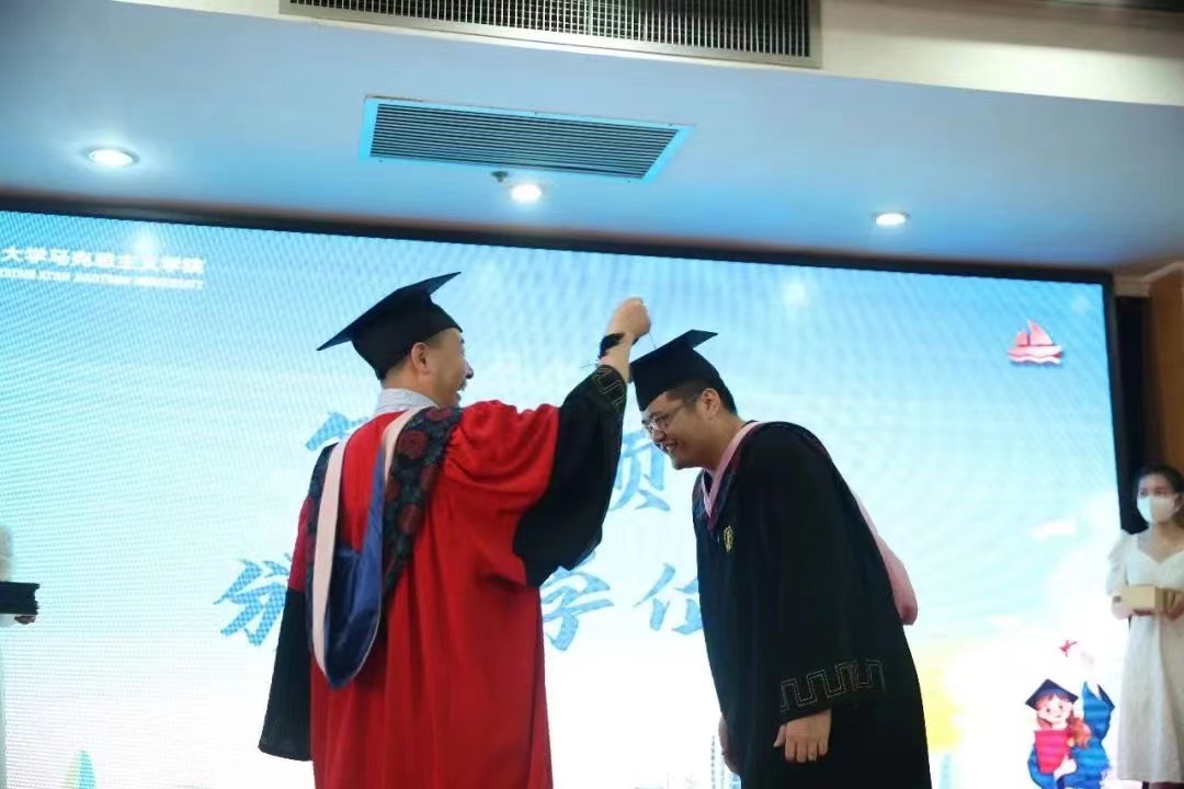 学位授予仪式环节,学院党委书记苏玉波,院长燕连福,副院长、崇实书院院务副主任陈建兵,学生处副处长、崇实书院院务主任张丹与毕业生导师,共同为毕业生颁授学位证书并发放纪念品。2022届毕业生依序上台拨穗正冠,接受祝贺,为在校求学的经历画上完美句号。