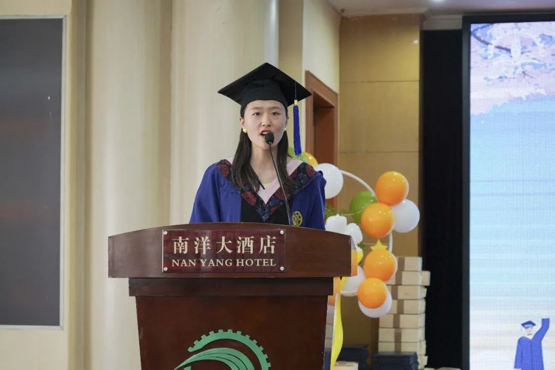 本科毕业生代表张智一在发言中表达了对母校和老师最真挚的爱与感谢,同时也向母校和广大毕业生送上深深的祝福。她表示,交大为广大学子创造了良好的学习氛围和成长平台,愿大家不负初心、不忘来路,得偿所愿、无愧时代,愿交大的荣光长伴你我,他日以同学之名为母校增辉。