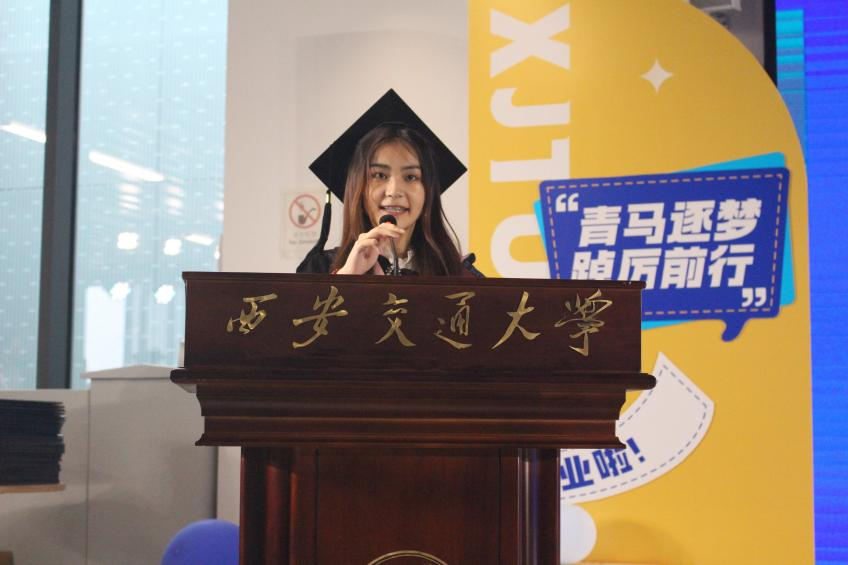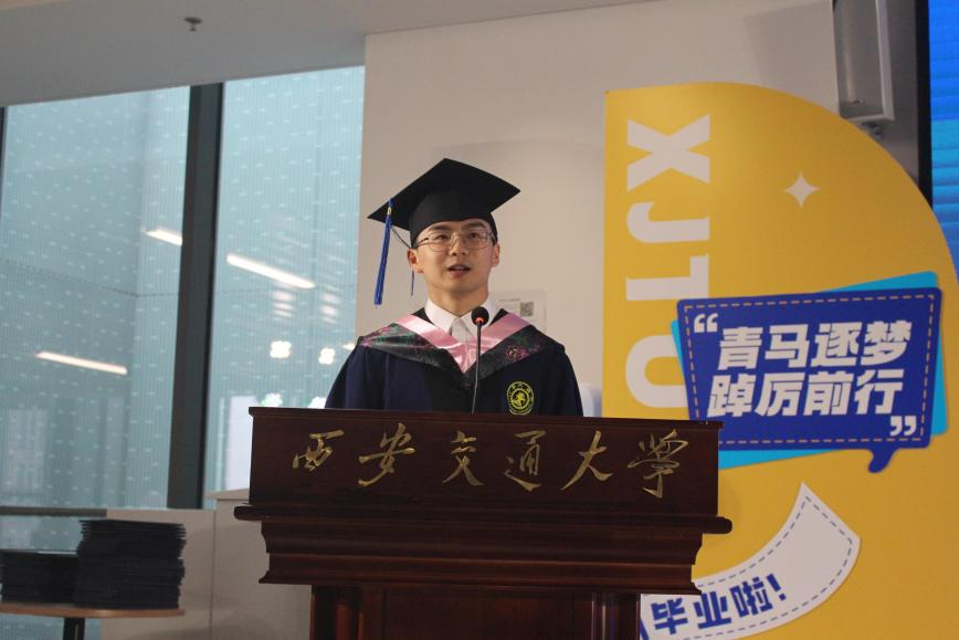 研究生毕业生代表李宇辰回顾了过往三年的求学生涯,他表示,是学校的培育,学院的信任和各位领导、老师的鼓励与支持,给予了马院学子成长成才的机会。毕业是终点更是起点,马院学子将继续拿好接力棒,做好传承人,以青春之我、奋斗之我、奉献之我,为西部发展、国家建设奉献智慧和力量。