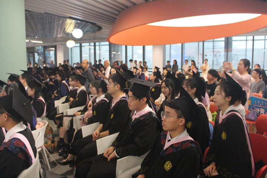 本科毕业生代表翁乐苗在发言中表达了对学校、学院、老师和同学们的感谢。她提到正是学校和学院的支持,让广大学子能够深切体悟自身青春奋斗轨迹,与党和人民的事业高度同频,祝愿大家不忘初心,永远保持热爱和对知识的渴求,以勇敢、谦逊、善良之心在未来的道路上勇毅前行。