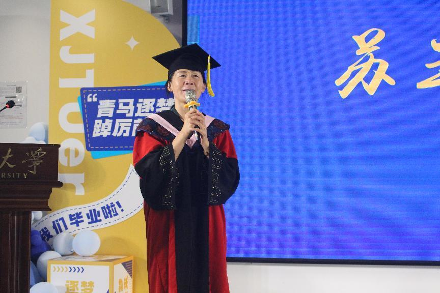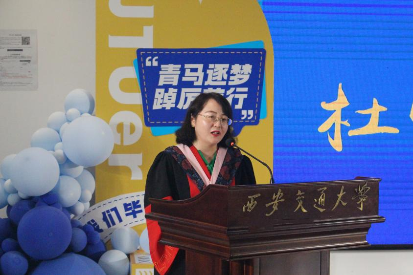 博士生导师杜晓燕教授作为导师代表发言。她从“想到”、“知道”、“做到”三个方面分享了自身的感受和经验,指出大家要做提出真问题的思考者、高效率的行动者,坚持终身学习,实现大我和小我相统一,对自身成长有益和对社会发展有益相统一,希望每位学子今后的生活都能生机盎然,前路有光。