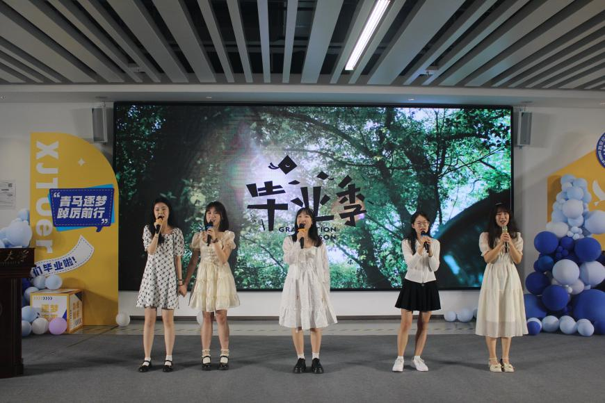 低年级学生代表带来歌曲串烧节目《奔赴未来》,祝福即将开启人生新篇章的师兄师姐们鲲鹏万里,前程锦绣。