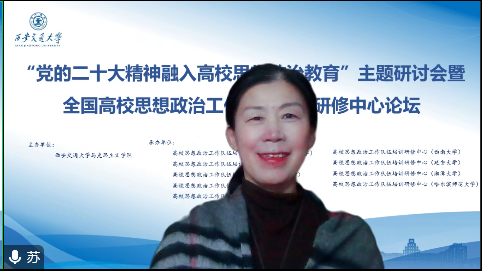 党委书记苏玉波对此次研讨论坛进行了总结。她指出,高校思想政治工作队伍研修中心的建设事关高校政治工作质量提升工程纵深发展,是加强高校思想政治工作队伍建设的重要平台和举措。她表示,自2019年首批研修中心获批建设以来,在教育部思政司的指导下,各中心都取得了显著的建设成绩,形成了鲜明的培训特色,此次论坛为各高校研修中心深入交流搭建了重要平台,为相互借鉴先进工作经验、加强中心合作共建营造了良好氛围。她提议,希望能够以此次论坛为契机,推动形成全国高校思想政治教育工作队伍培训研修中心工作交流、理论研讨常态化机制,在党的二十大精神的指引下,进一步建设好思政工作队伍培训研修中心,推动高校思想政治工作专门力量建设,切实培养高素质、高水准的高校思想政治工作队伍,不断提升高校思想政治工作质量。