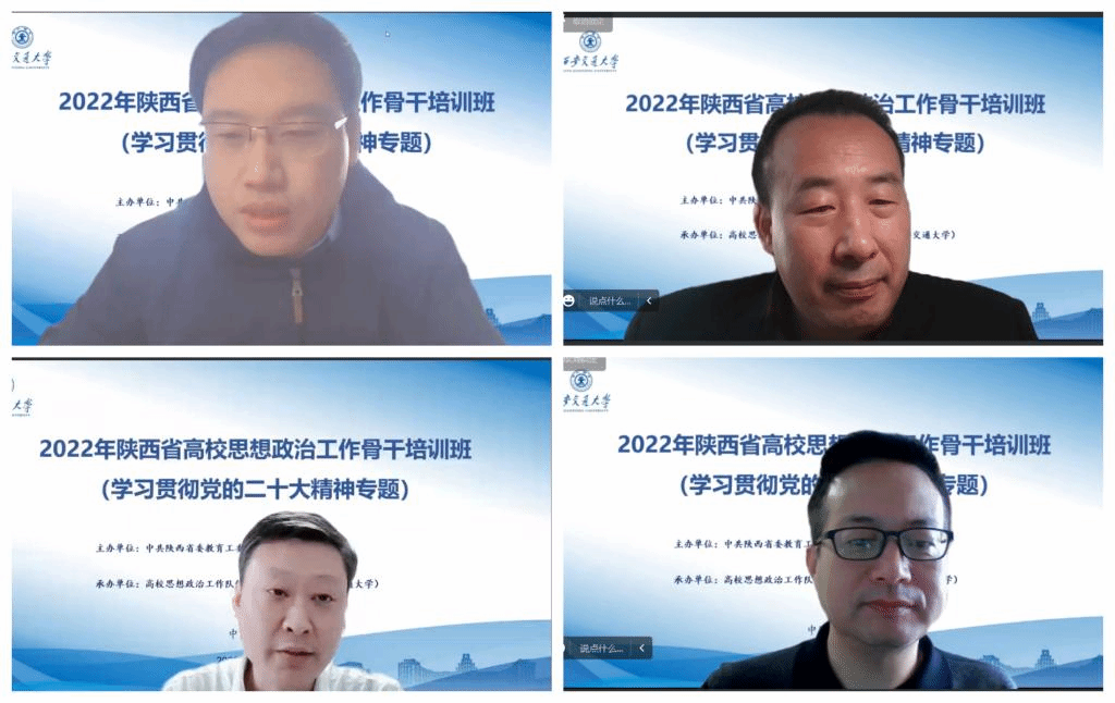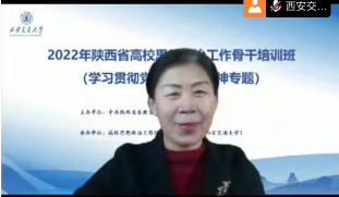 历来高度重视思想政治教育工作,培训研修中心作为教育部第一批40家国家高级思想政治队伍培训研究中心之一,自成立以来一直发挥着立足本校、带动全省、辐射全国的作用,承担了多期全国思政骨干示范培训班,并在陕西省委教育工委的指导下联系3年承办全省思政骨干培训班,积累了丰富的培训和教学经验,形成了具有交大特色的课程体系,为此次培训做了精心的准备。她希望参训学员能够珍惜此次来之不易的学习机会,围绕党的二十大精神融入高校思想政治工作展开深入的研讨,进行思想的碰撞,交流经验,积极探索。