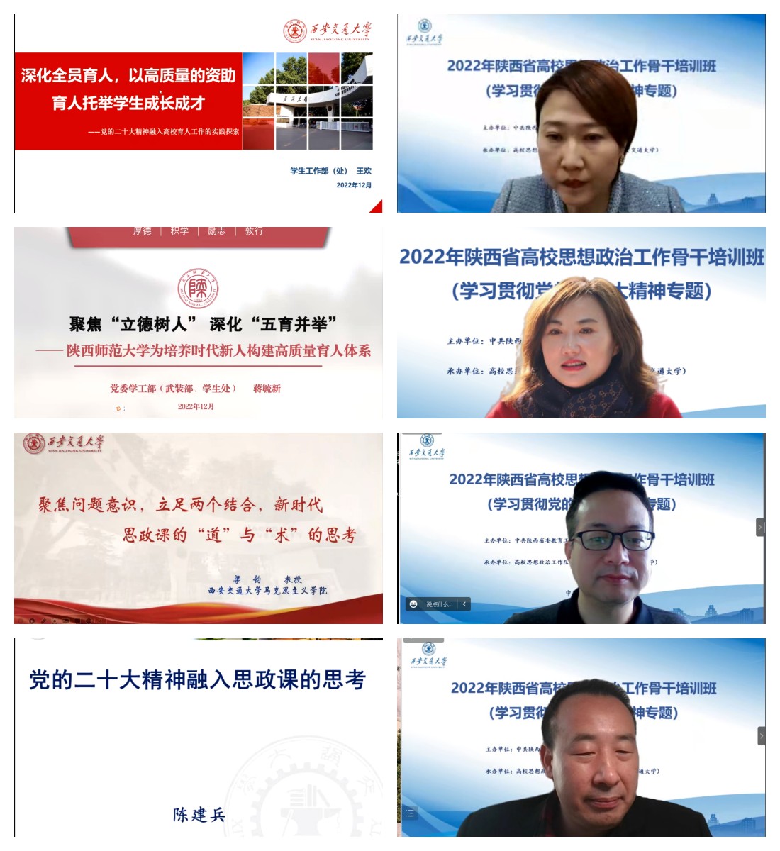 副院长陈建兵、韩锐、梁军分别主持了专题报告。500余名来自全省及全国各校思政骨干全程在线参加了培训学习。