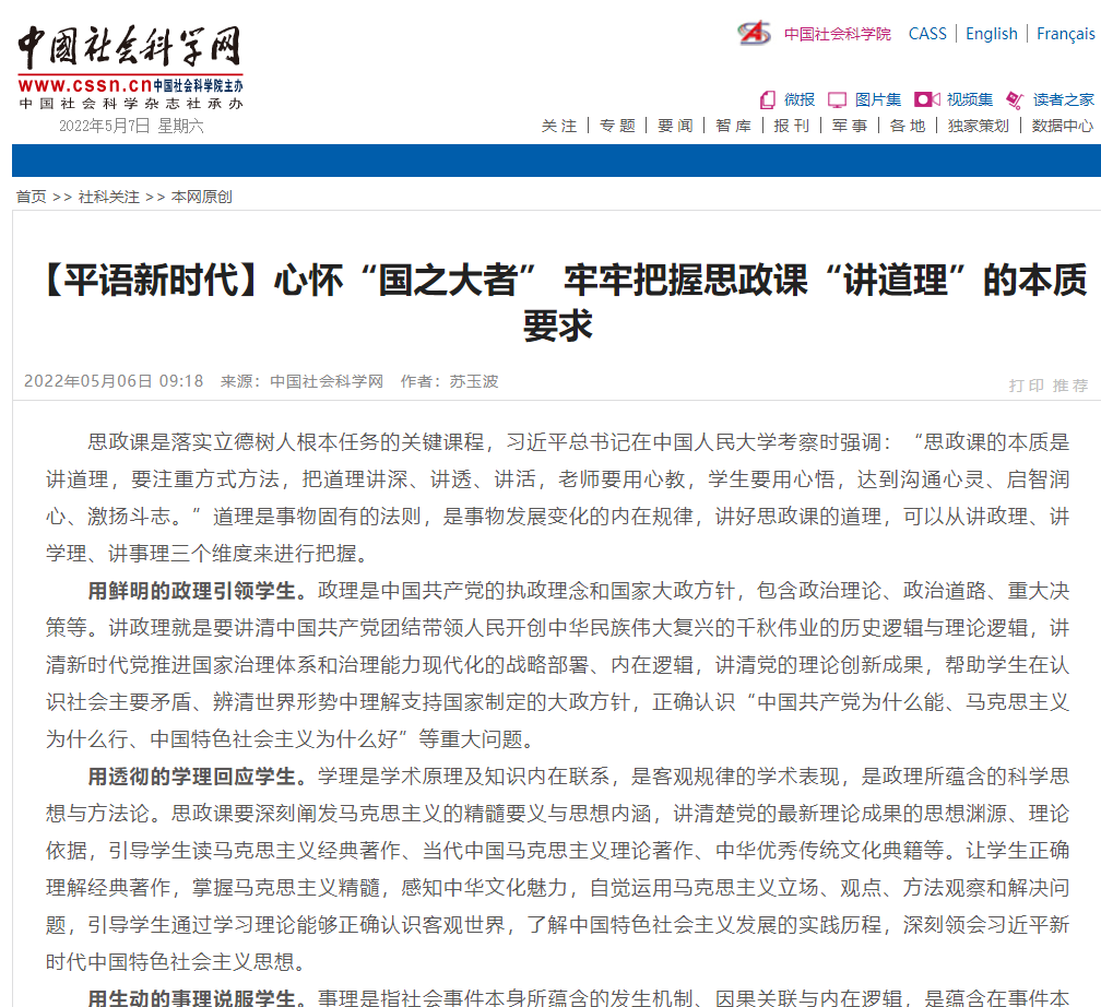 此外,教师是讲好思政课的关键。思政课教师要成为心怀“国之大者”的示范者和引领者,回答“中国之问、世界之问、人民之问、时代之问”,解答学生“成长之困”,启智润心、激扬斗志,做学生为学、为事、为人的大先生。