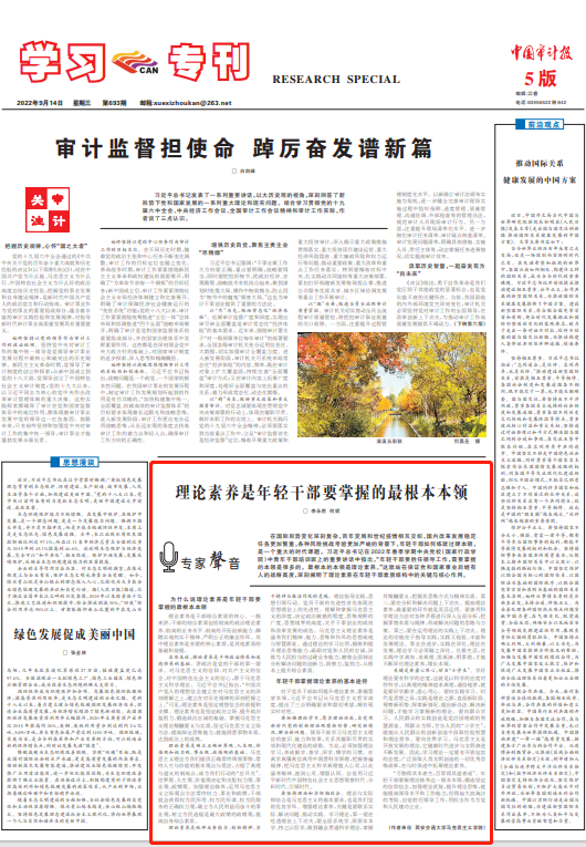 在国际形势发生深刻复杂变化,百年变局和世纪疫情相互交织,大国博弈更加激烈,世界步入新的动荡变革期,国内改革发展稳定任务更加繁重,各种风险挑战考验更加严峻的背景下,年轻干部如何练就过硬本领,担当起领导重任,这是一个重大的时代课题。习近平总书记在中央党校(国家行政学院)2022年春季学期中青年干部培训班上的重要讲话中指出,“年轻干部要胜任领导工作,需要掌握的本领是很多的。最根本的本领是理论素养。”这就站在保证党和国家事业后继有人的战略高度,深刻阐明了理论素养在领导干部素质结构中的关键与核心作用,并进一步揭示了提高理论素养、增强本领能力的基本途径,谆谆教诲,直抵心灵,为年轻干部锤炼工作本领、提高领导能力指明了方向。