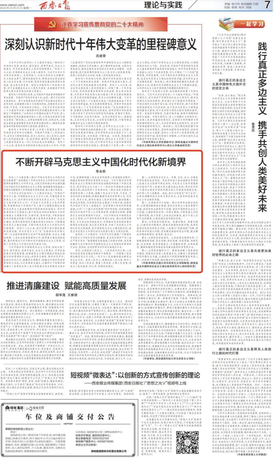 原文刊载于《西安日报》2022年10月31日07版