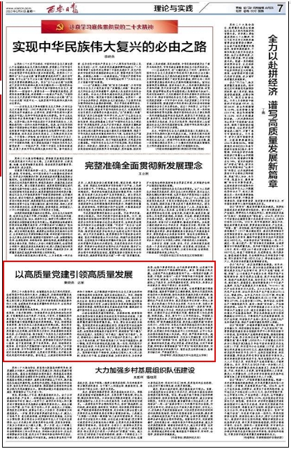 党的二十大报告指出,全面建设社会主义现代化国家、全面推进中华民族伟大复兴,关键在党,并强调高质量发展是全面建设社会主义现代化国家的首要任务。因此,新征程上我们要以更高的标准、更实的举措推进党的建设新的伟大工程,全面提高党的建设质量和科学化水平,以此推动我国实现高质量发展。