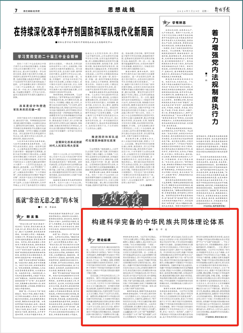 原文刊登于《解放军报》2024年7月29日第07版:思想战线